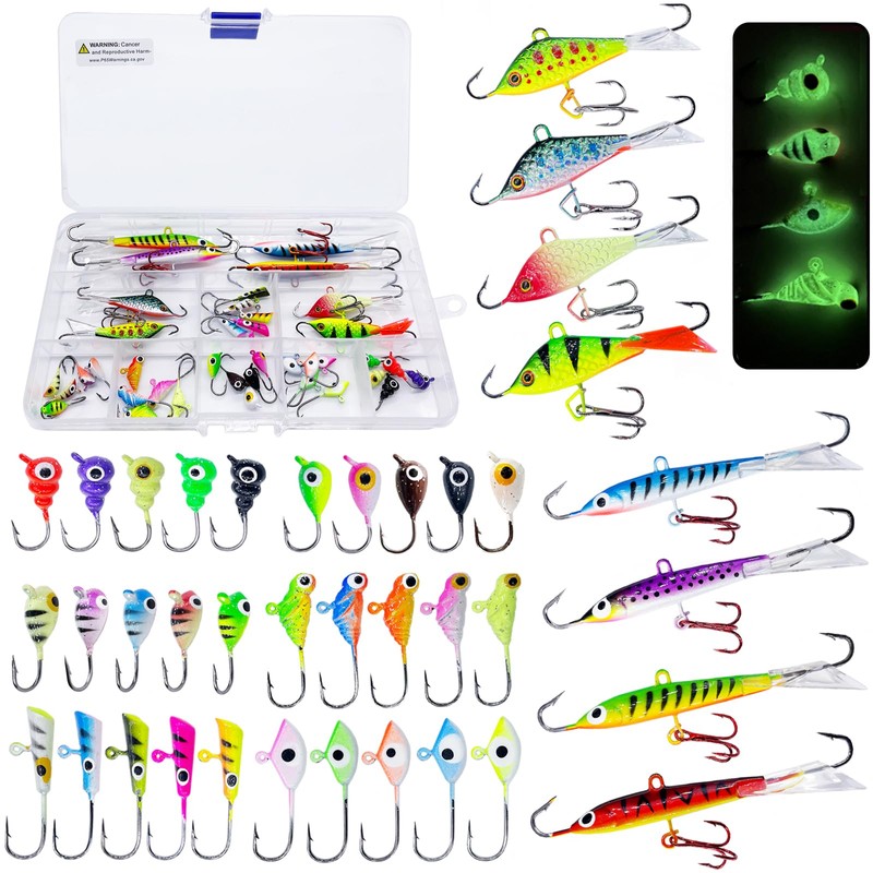 - 【Vivid & Attractive Colors】The ice fishing lures with vibrant colors are more attractive to the fishes.Parts of glowing ice fishing jigs will attract your target fish from a wider area.