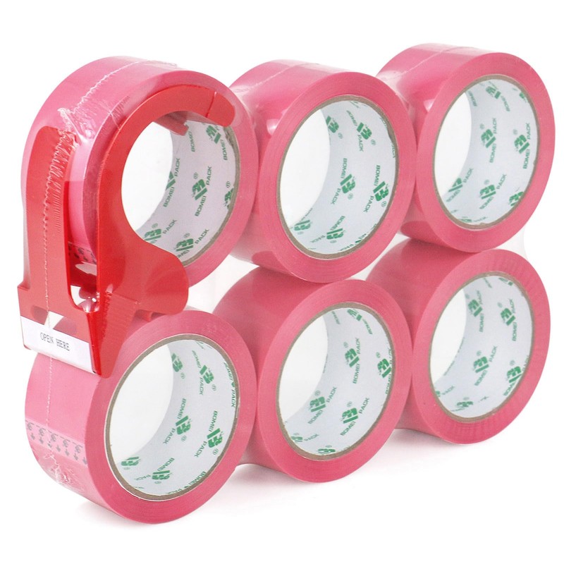 - ✔HEAVY DUTY: Pink packaging tape thickness is 2.4mil/ 60mic, thick enough. With strong adhesive BOMEI packing pink tape with dispenser is perfect for heavy goods packing, sealing and shipping.