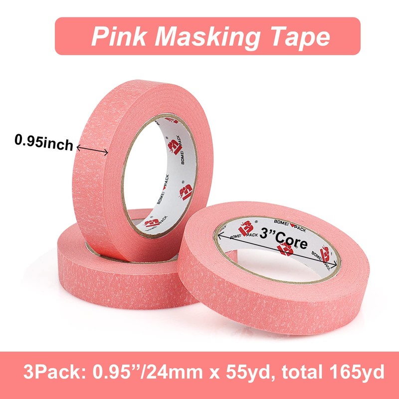 - Clean and Sharp Paint Lines - BOMEI PACK Pink Painter's Tape will help you create a perfect edge in all types of painting, trimming, edging, masking and protective applications. Great balance of strength, flexibility, durability, and removability. Contains crepe paper backing to prevent paint bleed, yet removes cleanly without damage. You'll always get a perfect edge when you use it to create a border for painting or caulking jobs.