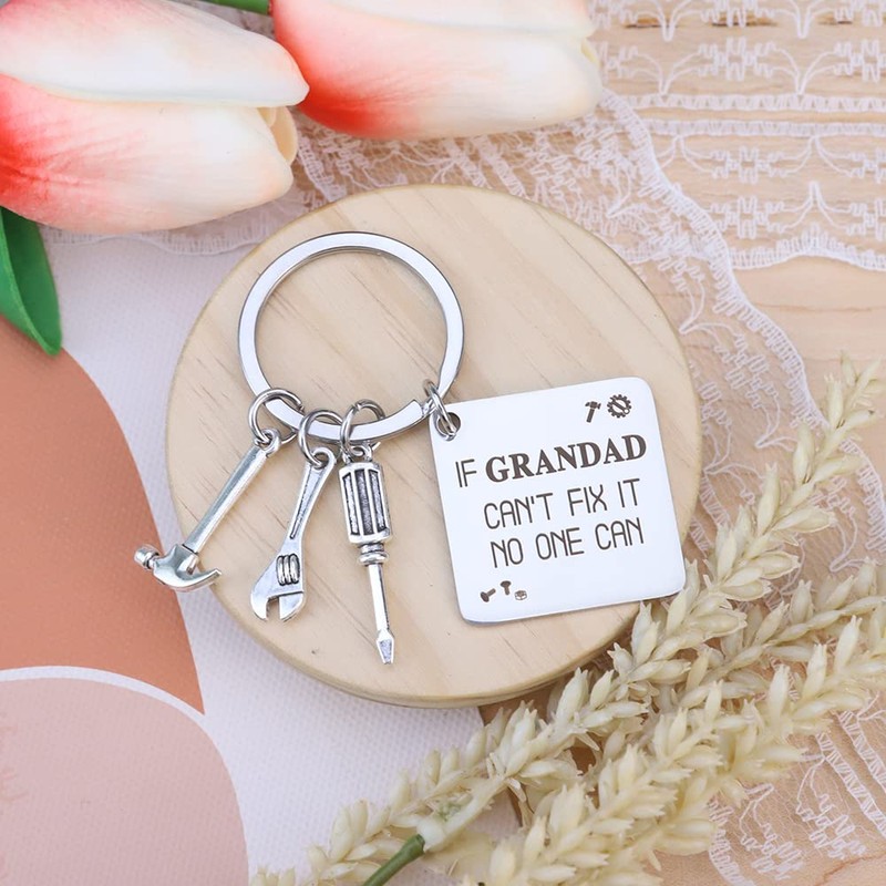 - đ ăGrandad Fathers Day Giftă"If GRANDAD can't fix it,no one can."The size of the keyring is 3cmĂ3cm, and the grandad keyring is delicate and small, so it is easy to carry.
