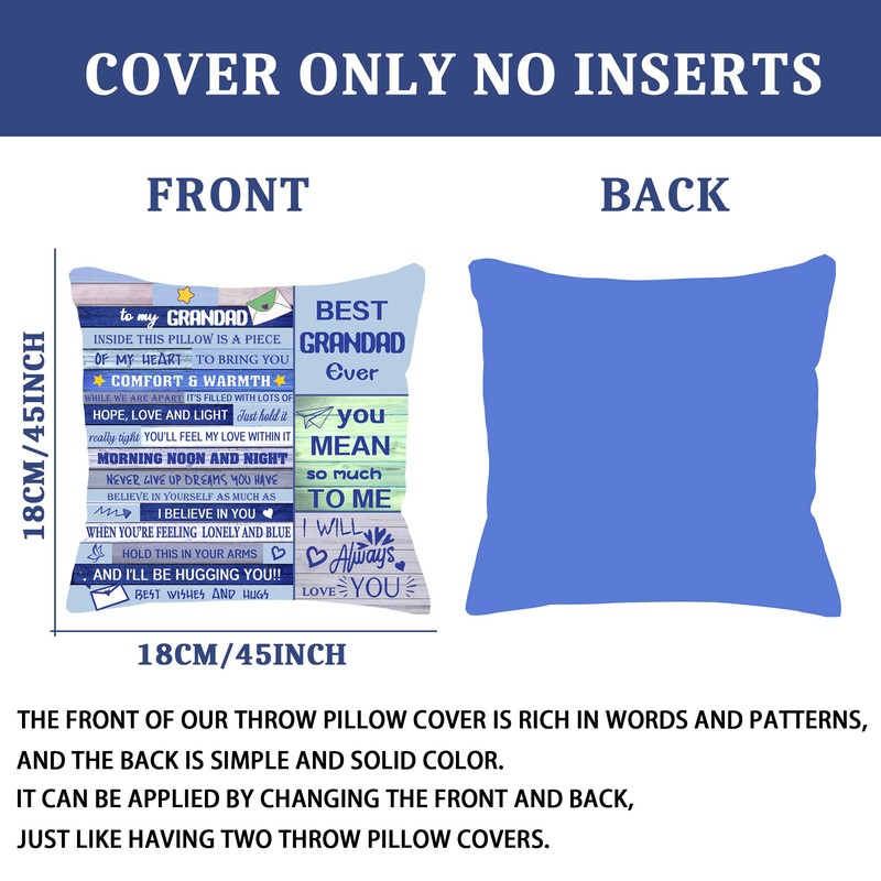 - NOTE - PILLOW COVERS ONLY, INSERT IS NOT INCLUDED. Need Cushion inserts 18x18 inches - 45 x 45 cm.The front is printed with words and patterns, and the reverse is printed with solid color. For details, see the attached drawings and scene drawings.