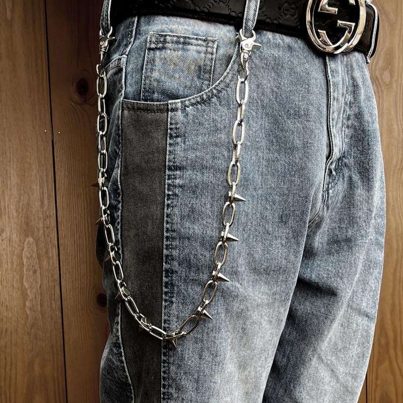 - Edgy Design: The pants chain features a bold and edgy design with pointed studs, perfect for adding a punk rock vibe to any outfit. Length: About 63cm; Weight: About 115g