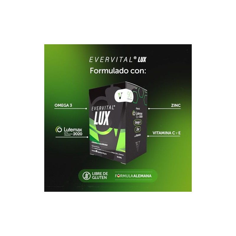 BOMUCA - Evervital Lux 90 Cpsulas Suplemento Alimenticio A base de Lutemax 2020 Omega 3 Zinc Formula Alemana