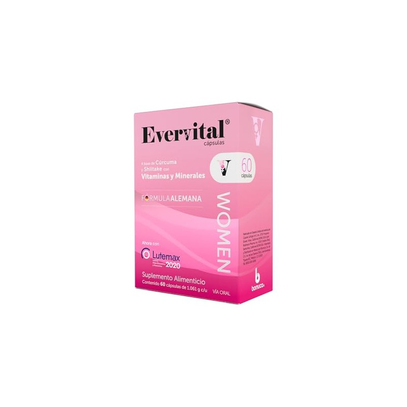 BOMUCA - Evervital Women 60 Cpsulas Suplemento Alimenticio A base de Crcuma Shiitake Lutemax 2020 Vitaminas y Minerales