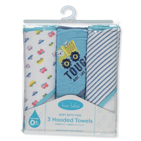 Bon Bebe Baby Big Boys' 3-Pack Hooded Towels Set - Blue/White, one Size