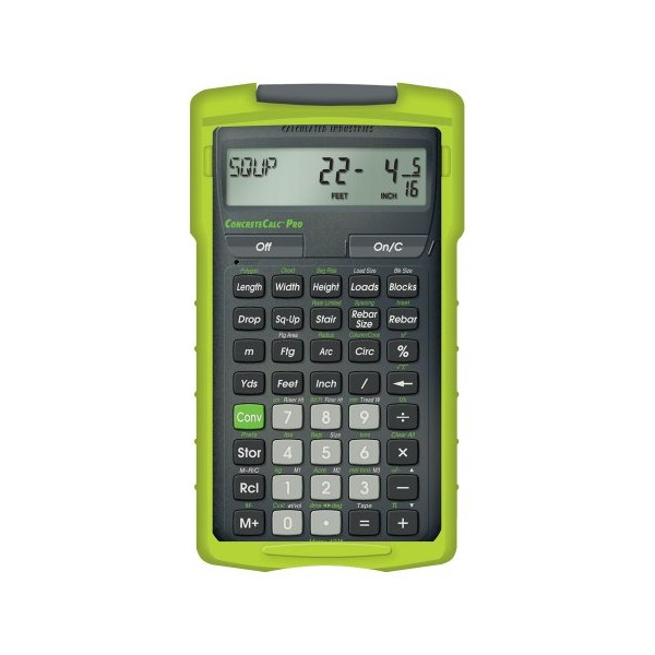Quickly & easily figure: Dimensional math & conversions; Handles all fractions; Concrete areas & volumes; Square-ups, drops & right angle problems; Blocks & footings; Weights/volumes; Circular problems, including areas & arcs; Stair layout calculations; Material cost & quantity estimations; Includes: User's Guide, Armadillo Gear Protective Case, Long-Life Battery; 1-Year Warranty