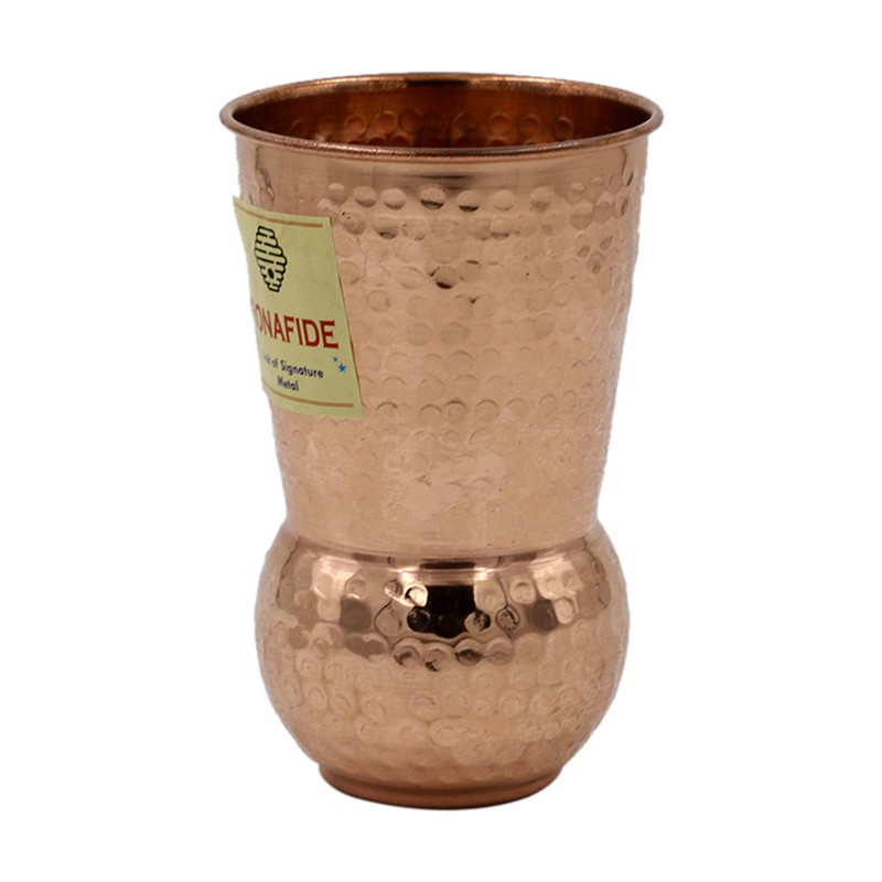 copper glass,copper tumbler,Drinking a glass of copper treated water on a daily basis helps in balancing the digestive system, flushes the kidney and stimulates peristalsis. Our set of two pure copper tumblers is ideal for serving water to your guests or keeping at your bedside. Copper darkens naturally over a period of time. The copper cup requires cleaning from time to time. Use lemon juice or tamarind to rub the utensils. Leave it for few minutes and wash with water. How to prepare copper treated water- To prepare copper treated water all you need to do is pour fresh drinking water every night in the copper tumblers and leave it overnight. Next morning, consume this copper treated water as the first thing in the morning. Copper water should always be stored and consumed at room temperature only.