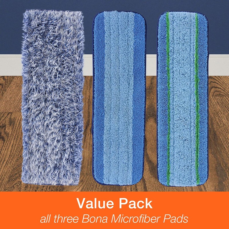 Bona Microfiber Pad 3-Pack includes Dusting, Cleaning, and Deep Cleaning Pad, for Hardwood and Hard-Surface Floors, fits Bona Family of Mops