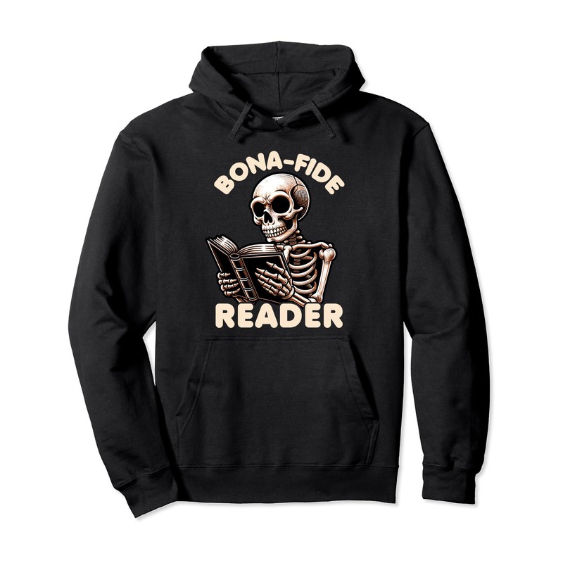 Bonafide Reader Cute Skeleton Reading a Book Lover Bookish Pullover Hoodie
