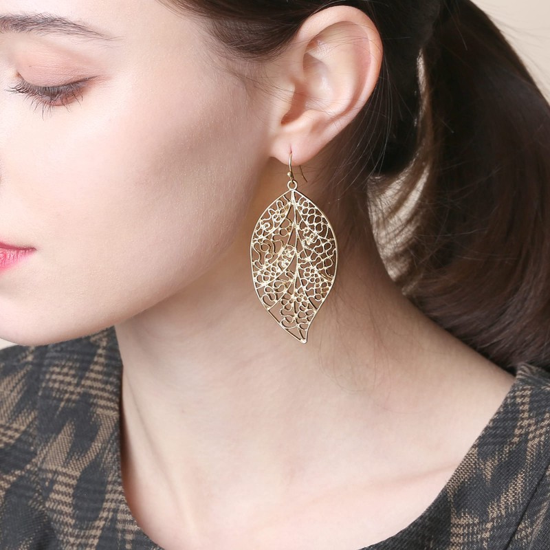 - These earrings measure 2.56 inches in length and 1.18 inches in width. These earrings feature a beautiful filigree leaf design that is both intricate and elegant. You can choose between vintage gold or silver rhodium plated on brass, ensuring a perfect match with your personal style. The earrings have fish hook closures, making them easy to wear and remove. They are also nickel and lead-free, making them safe for anyone with metal allergies or sensitivities.