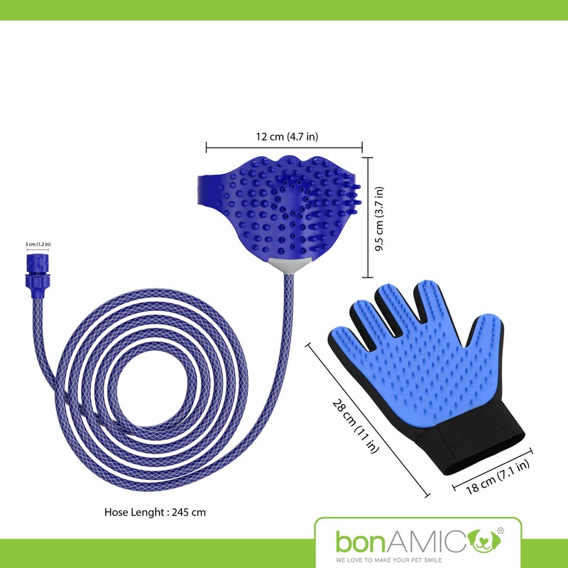 Bonamico Shower Buddy Sam Fur Care Set for the Dog, Hand Shower Set with Dog Shower Head, Fur Care Glove as a Dog Brush & Towel, Brush with Rubber Knobs as a Hand Brush