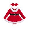 - đ ăCute Designă: Baby girl christmas outfit, newborn girl christmas outfit, newborn going home outfit girl, long sleeve princess dress with belt, velvet christmas dress for baby girl, fur trim skirt hem, snap closure at the bottom for easy diaper changing, furry santa costumes romper dress with bow headband. Red christmas style elements make your baby look fashion and lovely on Christmas, a nice Christmas gifts for baby girl, leave a beautiful memory for your baby girl!