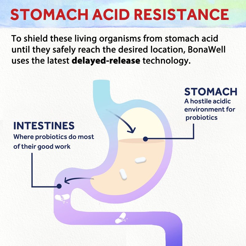 - Probiotic + Prebiotic + Digestive Enzyme: Bonawell Probiotics 120 Billion CFU boasts broad-spectrum live probiotic strains to restore your gut flora.* These beneficial cultures are accompanied by several types of soluble prebiotic fiber to feed them in the body, as well as an array of different digestive enzymes to amplify digestive function.*