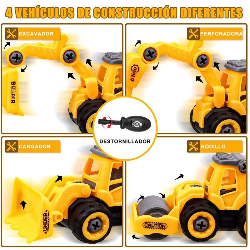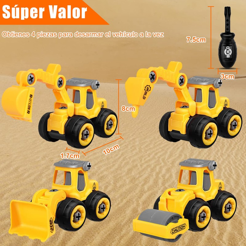 Bonbell Juguetes de Construccion, 4Pzs Take Apart Camiones De Construcción, Carritos Juguete con Excavadora, Topadora, Martinete y Apisonadora, DIY Carros Juguete, Regalo Navidad para 3-8 Años