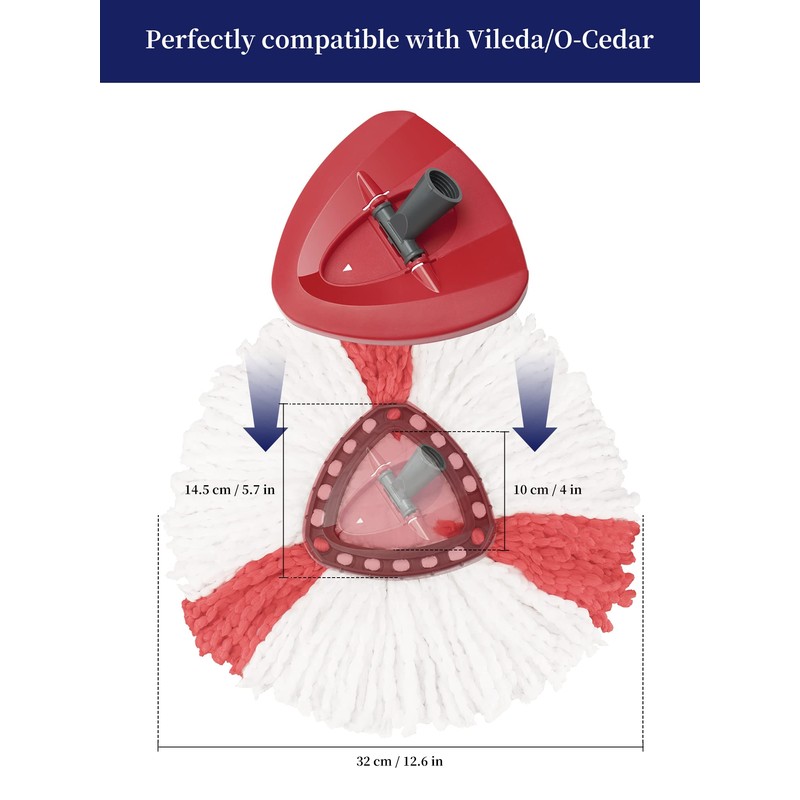 - đ§ăPERFECT REPLACEMENTăOur mop replacement heads are compatible with VILEDA mop head, fit for Triangle Spin Mop, work well as original. Machine washable and reusable.