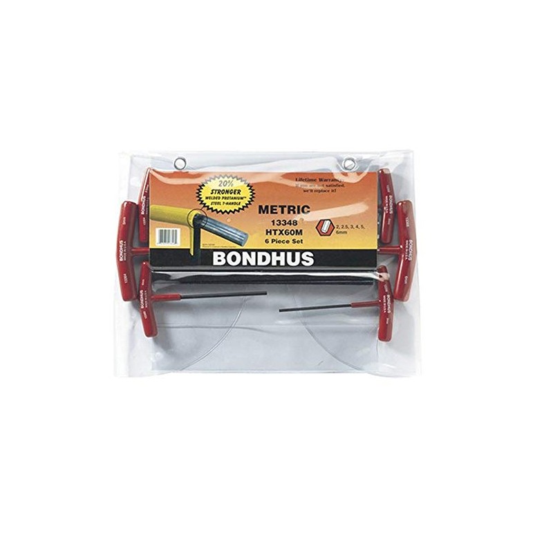 Bondhus 13348 Set of 6 Hex T-Handles, Sizes 2-6mm , Red