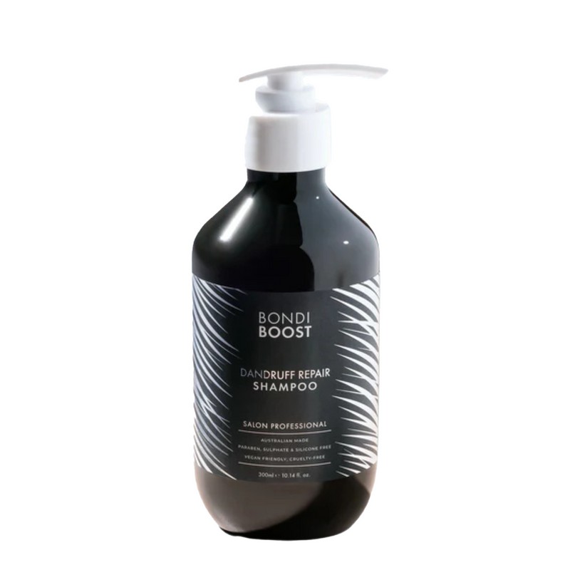 Itchy dry scalp relief! Dandruff Repair Shampoo is an aloe-based treatment system combining Anti-Fungal Piroctone Olamine with Peppermint Oil and Hydrolyzed Quinoa, a multi-targeted fix for dry, itchy scalps. The Piroctone Olamine helps to banish flakes, the Peppermint Oil is like a pep talk for your scalp, encouraging health from the roots, and Hydrolised Quinoa nourishes and hydrates, soothing itchiness and promoting long-term prevention of dryness. The results? Smooth, healthy-looking hair, no flaky bits at the roots, 10/10 scalp vibes. What are the benefits and features of Bondi Boost Dandruff Shampoo 300ml? Aloe-based Cruelty-free & vegan Salon quality & scalp friendly Powered by Aussie naturals Free from silicones, sulphates, parabens Cooling peppermint fragrance to leave your scalp feeling fresh Who is Bondi Boost Dandruff Shampoo 300ml for? This shampoo is suitable for those with itchy, dry, and flaky scalps who want to gently cleanse their scalp while soothing and whisking away flakes for better scalp days.