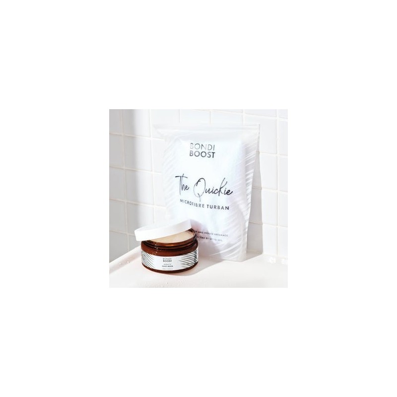 Bondi Boost The Quickie Hair Turban is a super absorbent micro-fibre hair turban that fights frizz and reduces breakage, drying hair 50% quicker than a normal towel.