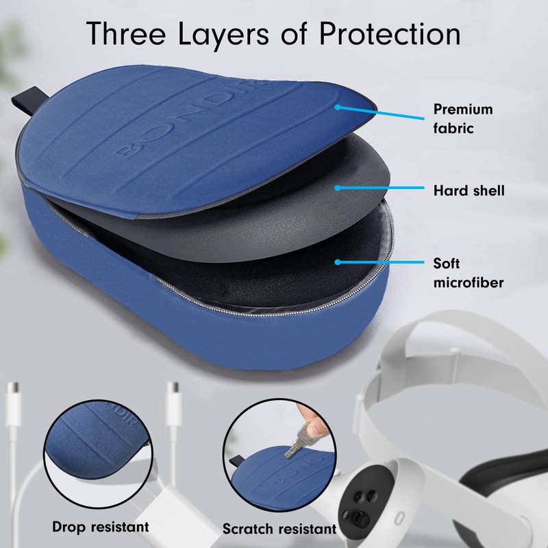 BONDIR Carrying Case for Oculus/Meta Quest 2 / Meta Quest 3 (Navy Blue)