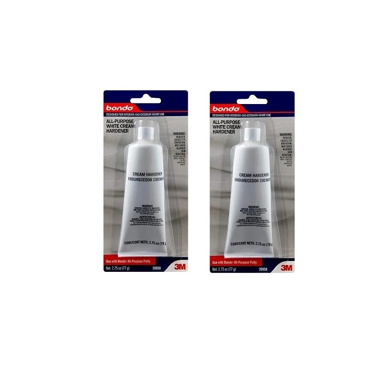Bondo™ all-purpose white cream hardener is a hardening agent designed to work with all fillers, putties and glazes. The creamy consistency mixes easily and quickly. Our hardener combines the best of ease of use and quality final results. When mixed with a two-part filler, a chemical reaction occurs which allows you to make high quality, long-lasting repairs to metal, masonry, concrete, painted wood, bare wood, drywall and more. The resulting repair can be sanded in 15 min and painted in only 45 min. The product once mixed with the filler/glaze dries to the natural color of the filler/glaze which can be easily covered with most primer and paint. Our white cream hardener is ideal for situations in which a neutral color is preferred. The white color allows for keeping the mixture the natural color of the filler/glaze or adding a customized tint if necessary. Our cream hardener is formulated and packaged under temperature controlled conditions to ensure freshness and maximum performance. Mixing auto body filler and cream hardener is an easy task. To reduce the chance of creating pinholes, avoid mixing in a circular pattern, which can force air into the mix. Mixing should be done in a back and forth wiping or folding motion.- Brand: Bondo
