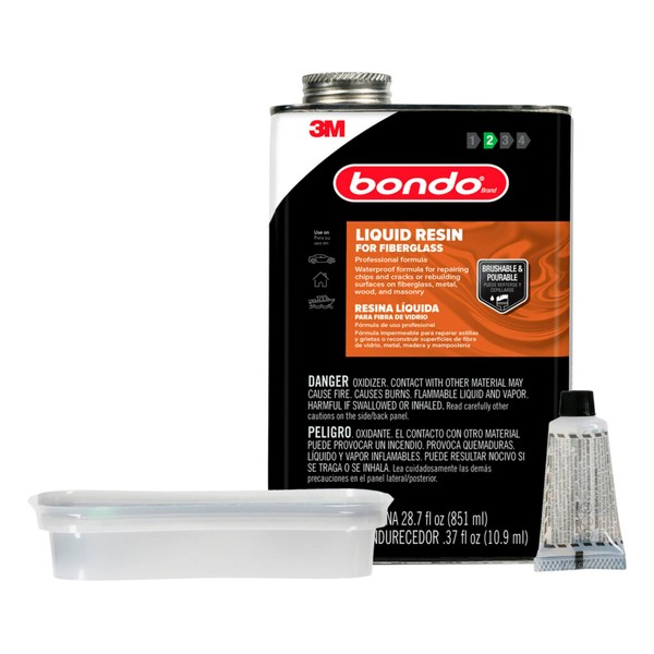3M Bondo Fiberglass Resin 28.7 US Fl oz Filler with 0.37 Fl oz Hardener, Stage 2, Waterproof Formula for Repairing, Resurfacing, or Rebuilding Metal, Wood, Fiberglass or Masonry Surfaces (00402)