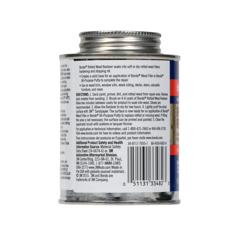 Bondo Rotted Wood Restorer, 8 fl oz., Penetrates into Spongy, Dry-rotted Wood Fibers Creating a Solid Surface, Dries clear and tack free, Water Resistant, Stainable and paintable (20131)