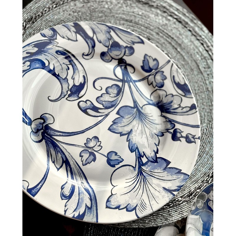 - The design of the Limoges Azure dinnerware set is inspired by the exquisite floral patterns of mid-19th-century European porcelain. The rich blue and luminous white of bone china will beautifully complement any decor you choose for your table.