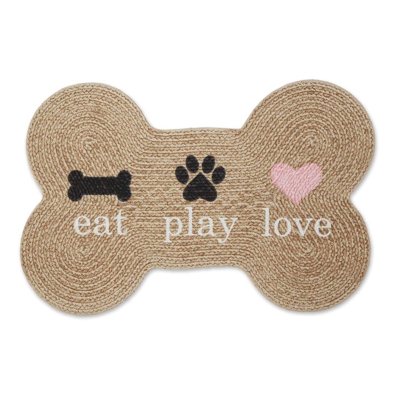 DII Braided Pet Mat Collection 100% Cotton, Bone Shape, Stone Eat Play Love