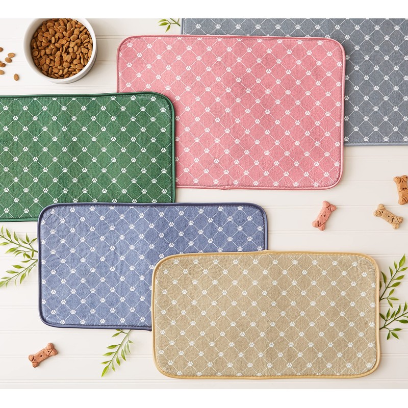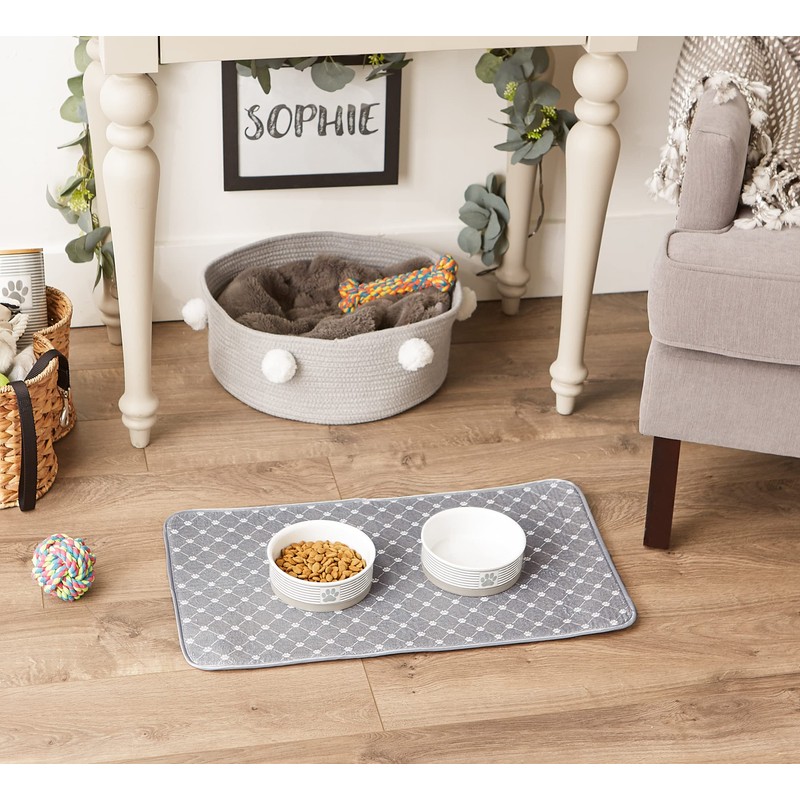 - PORTABLE PET FOOD MAT: Light weight food mat measures 14x24", maximum absorbency ensures that your floors have protection from spills
