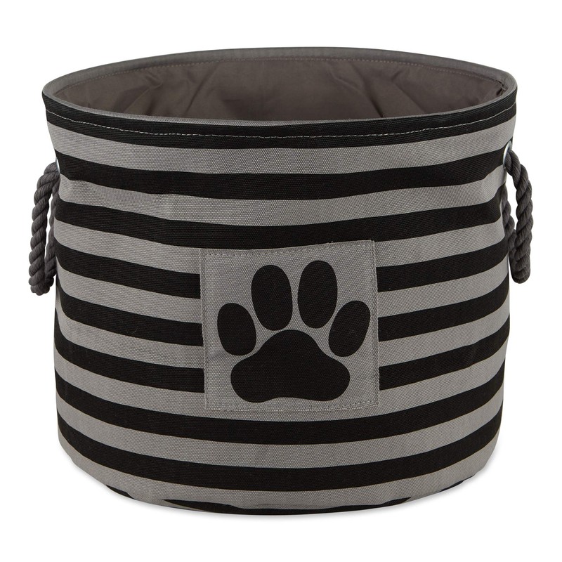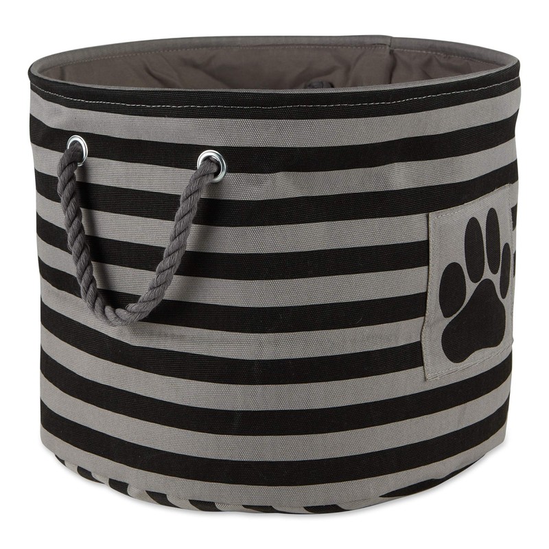 Bone Dry Pet Storage Collection Striped Paw Patch Bin, Black, Small Round