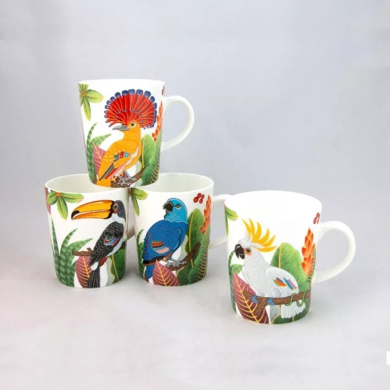 Bone Gracie Bone China Birds of Paradise Coffee Tea Mugs 12 Ounce, Assorted S/4