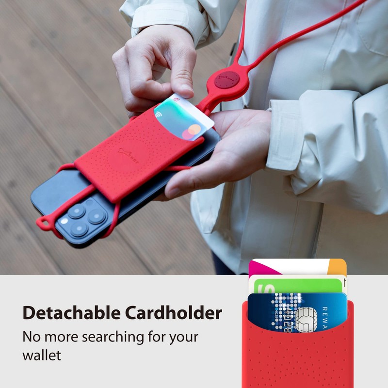 BONE Lanyard Phone Tie 3, Cell Phone Strap with Card Slot & Pocket, Adjustable Silicone Lanyard, Universal Neck Phone Holder Compatible with Most Smartphones (Red - Card Holder)
