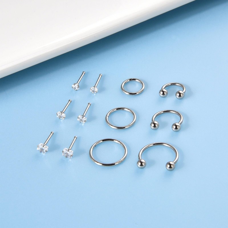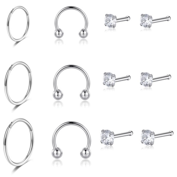 - Nose Rings Set: 3Pcs nose rings hoop--6mm/8mm/10mm, 3Pcs horseshoe nose rings--6mm/8mm/10mm, 2 pieces of each size: 2mm/2.5mm/3mm cz bone nose rings, can cater to different preferences and styles, let your personality and charisma shine through even with a simple ensemble!