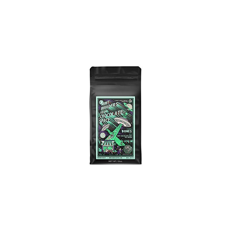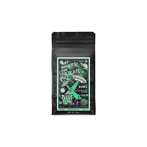 Bones Coffee Mint Invaders Ground Coffee Beans, 12 oz, Flavored Coffee Gifts, Flavored Coffee Ground & Beans (Whole Bean)