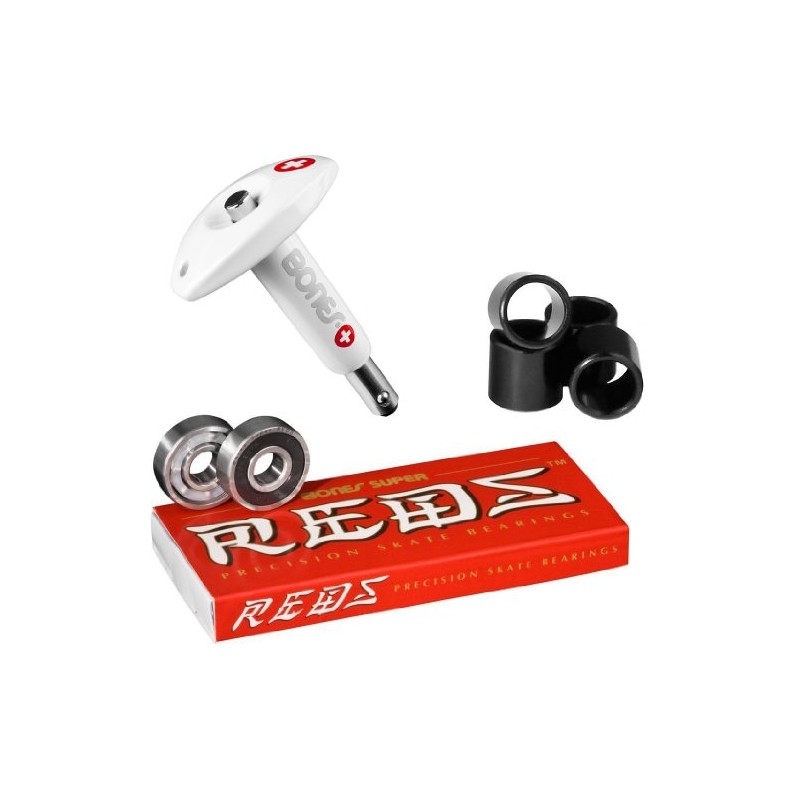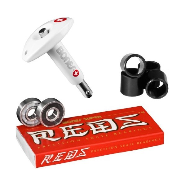 Super Reds Bearings from Bones are designed from the ground up to be the best bearing on the market at this price point. Super Reds offer higher quality steel races, higher grade balls, and a superior surface finish. The result is a bearing that is as fast as regular Bones Reds bearings, but is also quieter, smoother, and longer lasting. Super Reds use a black shield and laser engraving to differentiate themselves from original Reds. What's in the Box? Set of eight bearings and instructions Product Description Bones Skateboard Bearings have the best reputation in the skateboard industry, and have had this honor for the past 25 years because of their performance and quality. Everyone who rides Bones knows how fast they are, and most also comment on how long they last, typically several times as long as low cost bearings. Skaters who use Bones do so because they want the very best equipment they can get and they know the difference between ordinary and exceptional. Our team is a who's who of top skaters and we are proud to be associated with each one of them.