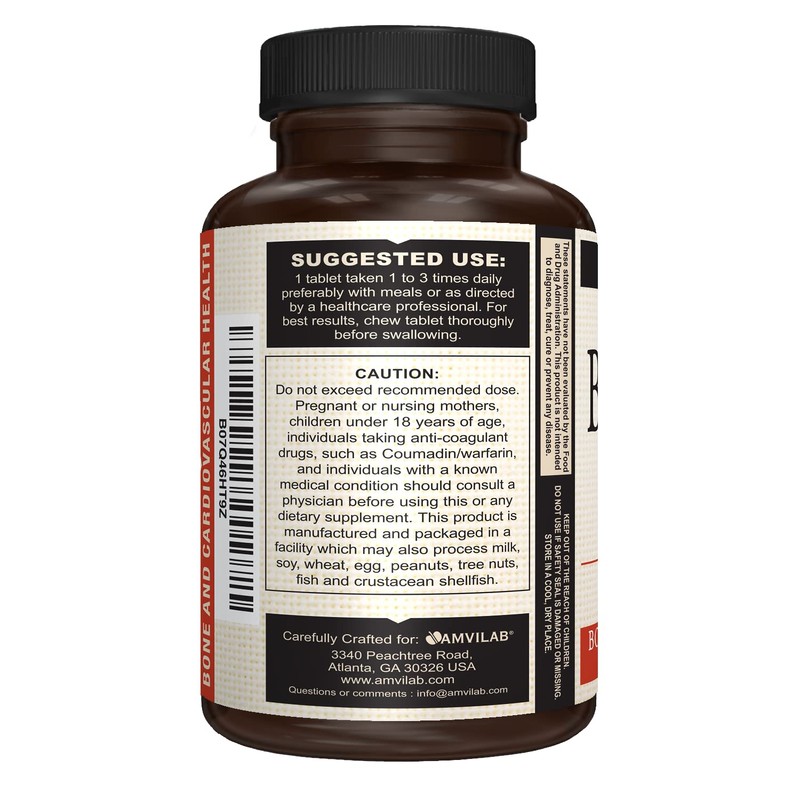 AMVILAB Bonex K Supplement|Vitamin D & K Complex|Supports Heart, Bones & Teeth Health|2000IU Vitamin D3 & 75mcg Vitamin K2|Non-GMO|Small & Easy to Swallow|60 Day Supply Chewable Tablets