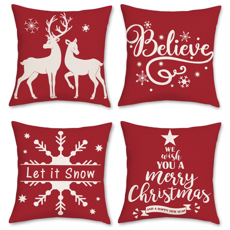 • Christmas Design: Add a festive touch to your home with our Christmas red pillow cover featuring a delicate white pattern of reindeer, snowflakes and some wish words, The "Believe" message in the center of the design is sure to inspire feelings of joy and wonder in all who see it, while the "We Wish You a Merry Christmas" and "Let It Snow" messages add an extra touch of cheer.
