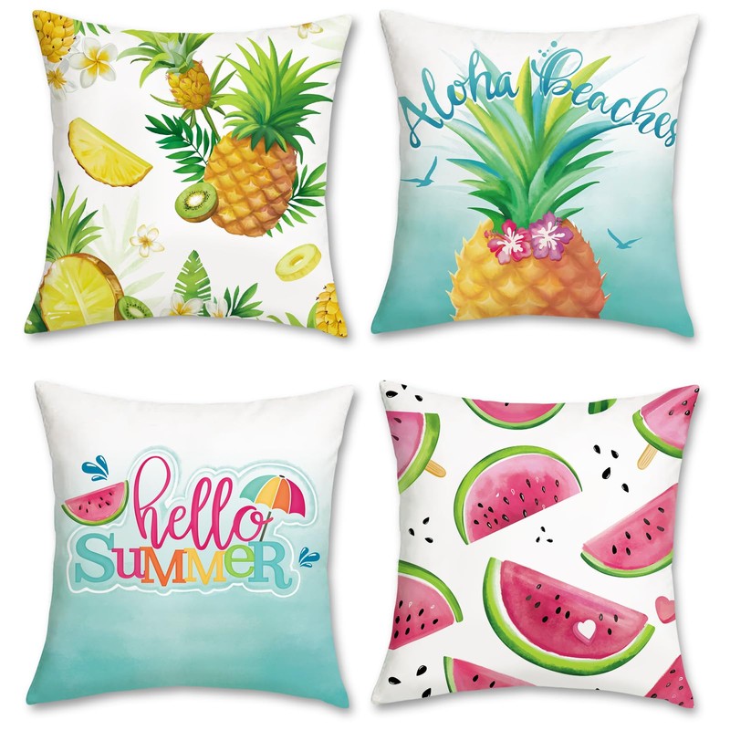• Summer Fruit Design: Add a touch of summer to your home decor with these vibrant fruit inspired pillow covers, featuring fun watermelon and pineapple motifs.