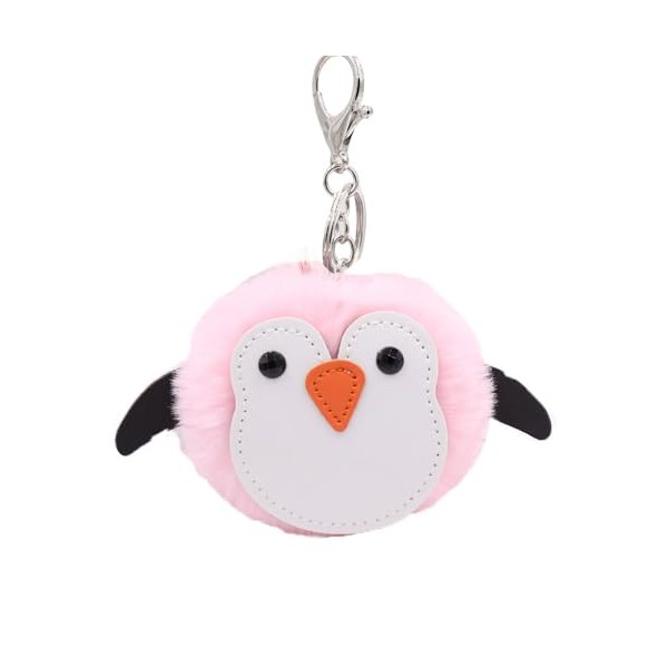 BONICI Men Women Cute Lovely Round Face Fluffy Plush Penguin Keychain Key-Chains Keyring Handbag Purse Backpack Car Key Ring Pendant -Pink