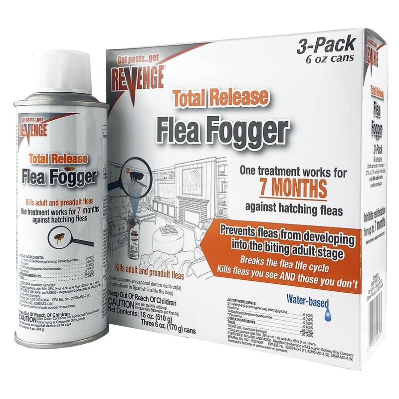 Revenge Total Release Flea Fogger, Pack of 3 6 oz Ready-to-Use Cans, Long Lasting Formula Kills Fleas and More