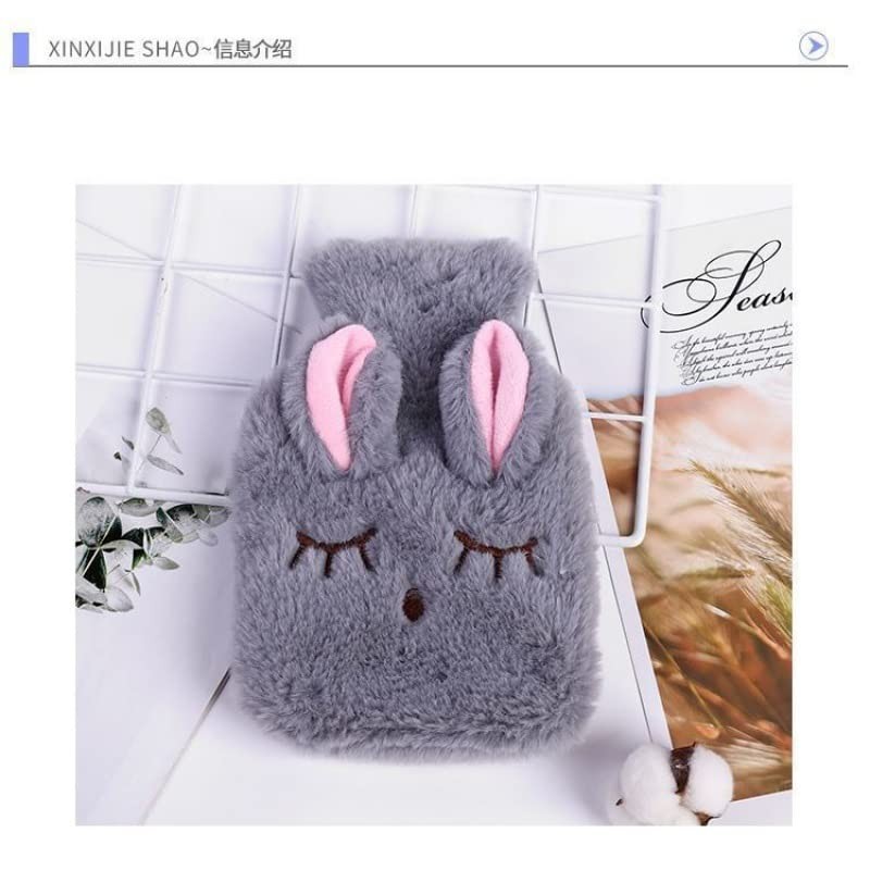 🌟 ⭐ Bonita Bolsa de Agua Caliente, Botella de Agua Caliente a Prueba de Explosiones para Evitar Escaldaduras, Diseño de Conejo Desmontable, Funda de Felpa, Bolsa de Agua Caliente (Gris) ⭐ 🌟