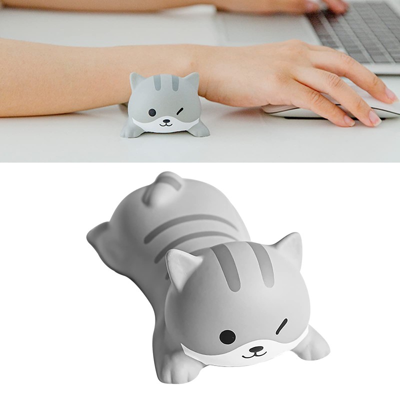 Bonito Teclado de Muñeca de Estilo Animal de Dibujos Animados, Almohadilla de Muñeca, Alfombrilla de Ratón Ergonómica Suave, Alfombrilla de Muñeca para Suministros de Oficina (gato gris)