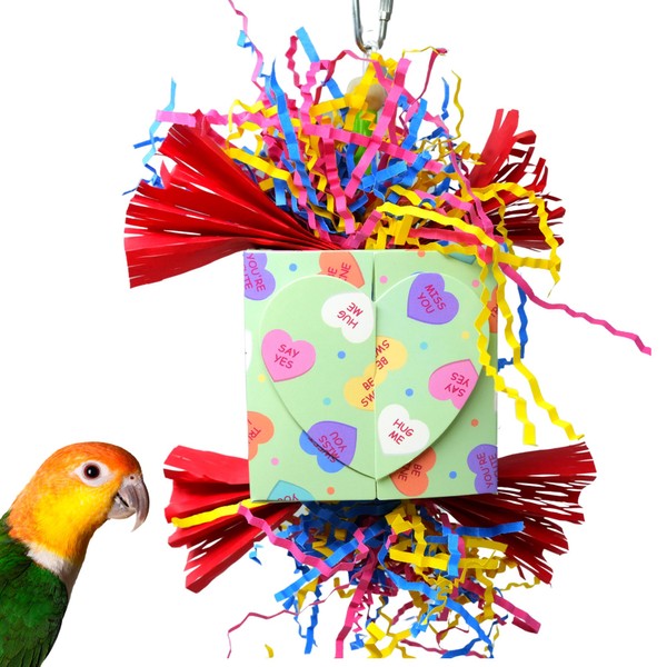 Bonka Bird Toys Heart Box Valentine Chew Shred Forage Parrot Cage Toy, Conure, Ringneck, Parakeet, and Similar Breed Sizes (1043 Green)