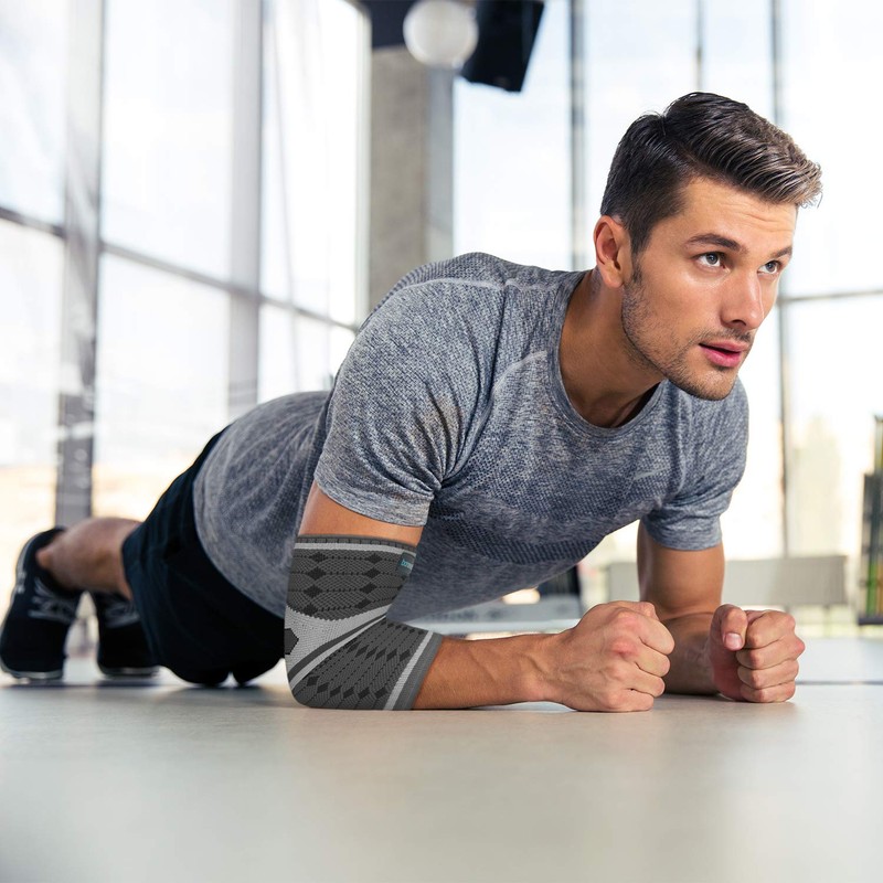 - ✔ DIMENSION & MATERIAL: Please measure your elbow before you order and choose the right size for you. Please see the size chart in the image overview. Material composition: 41% nylon, 12% elastane, 40% silica gel, 7% terry cloth.