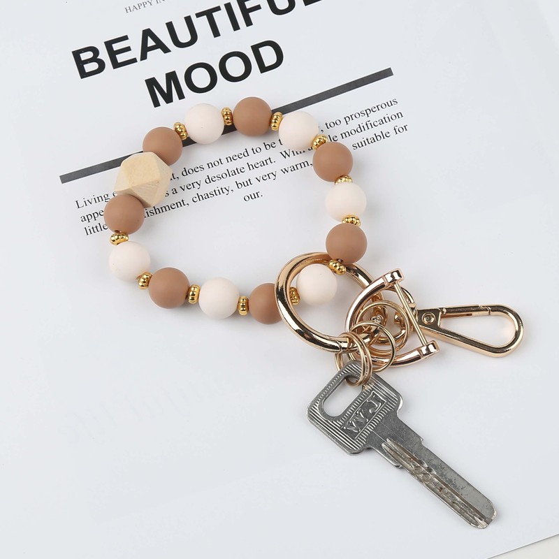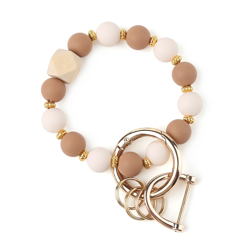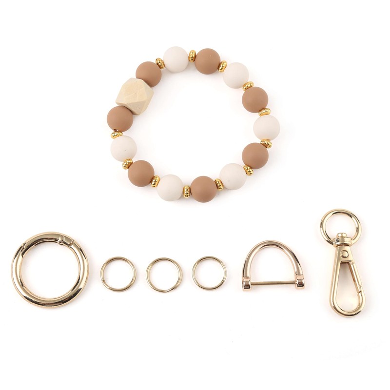 Looking for a cute and stylish keychain for women? Our handmade silicone beaded wristlet keychain is the perfect choice! Designed for women who love cute and functional accessories, this wristlet keychain is a must-have. With its unique combination of off white and brown silicone beads and elegant gold flower spacers, this keychain bracelet is not only a practical way to keep your keys organized but also a charming fashion accessory.