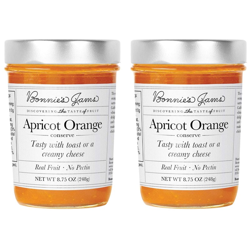 Bonnie's Jams Apricot Orange Jam, 17.5 oz, Made with Sweet, Rich Apricots and Ripe Valencia Oranges, Twice the Fruit-Half the Sugar, No Pectin Added (2-Pack)