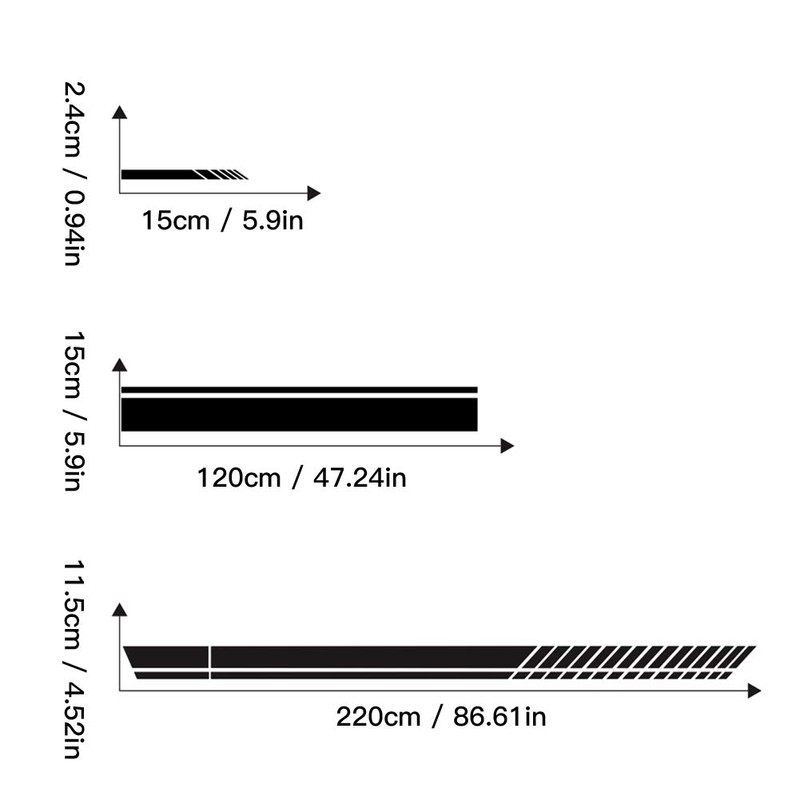 Cover 120 x 15 cm (1 piece) 220 x 11.5 cm (2 pieces) on both sides of the body.