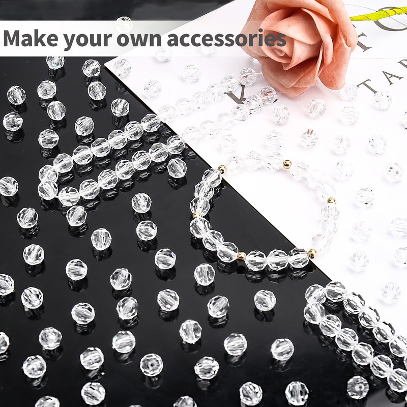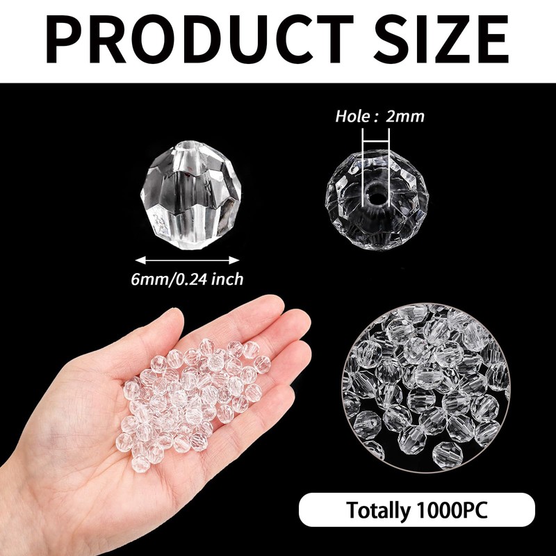 - Package Include - Approximately 1000pcs 6mm acrylic faceted round crystal beads are included in the package. Acrylic faceted crystal beads are an economical and light-weight alternative to glass crystal beads. We carry different sizes ranging from 4mm to 8mm in a wide variety of colors in opaque and translucent. They are popular for jewelry making as well as stringing on wire to make everything from sculptures to bags.