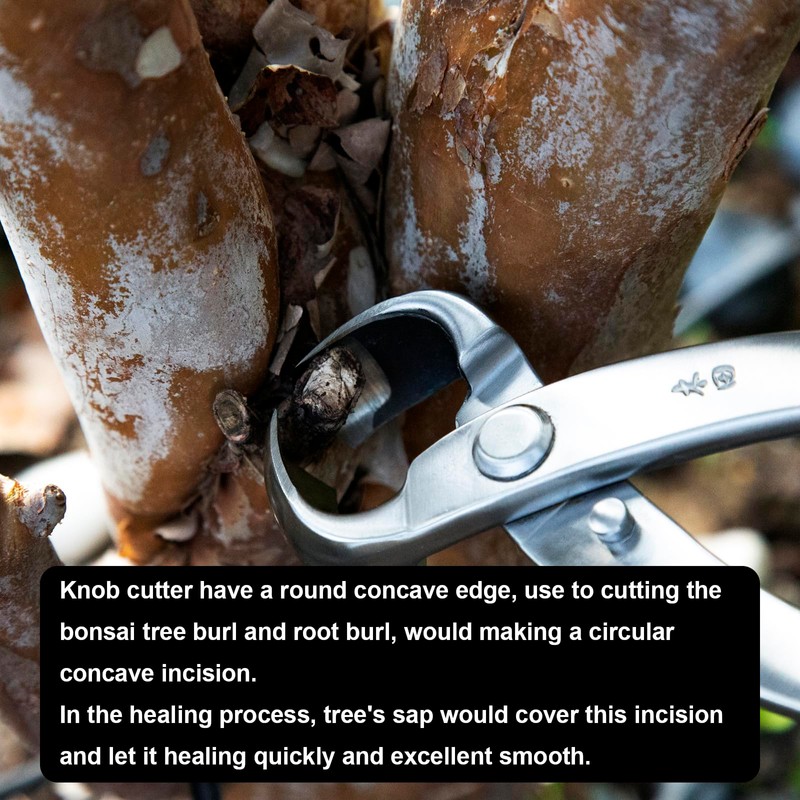 - Function Detail: this knob cutter, have a round concave edge, use to cutting the bonsai tree burl and root burl, would making a circular concave incision. in the healing process, tree's sap would cover this incision and let it healing quickly and excellent smooth.