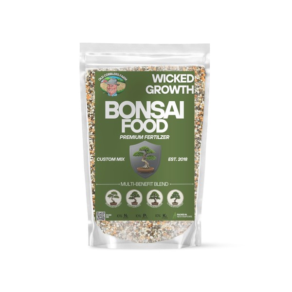 Bonsai Tree Food by Old Cobblers Farm is a premium, balanced fertilizer specifically crafted to support the intricate, controlled growth of bonsai trees. With a dependable 10-10-10 NPK ratio, this formula delivers even nutrition to encourage slow, steady development of leaves, roots, and branches—without overstimulating aggressive growth that disrupts bonsai form and structure. The 10% nitrogen promotes rich foliage and vibrant leaf color without pushing excessive top growth. Phosphorus (10%) supports root strength and trunk thickening, while potassium (10%) improves stress resistance, overall health, and the tree’s ability to respond to pruning, wiring, and shaping techniques. Suitable for all bonsai types—including juniper, ficus, maple, elm, pine, boxwood, and jade—this formula is designed to support both indoor and outdoor bonsai in containers. Whether you're a beginner or an experienced practitioner, this fertilizer provides the structure your bonsai needs to stay healthy and visually balanced over time. The easy-to-use granular format allows for precision feeding—perfect for surface application or blending into bonsai soil. It’s ideal for seasonal feeding routines and encourages slow-release results that align with bonsai’s natural, gradual growth pace.